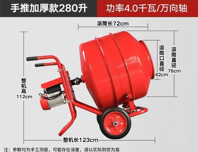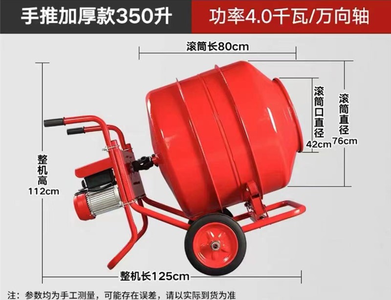手推臥式小型攪拌機(jī)有280升、350升、400升、600升、800升共5種規(guī)格。